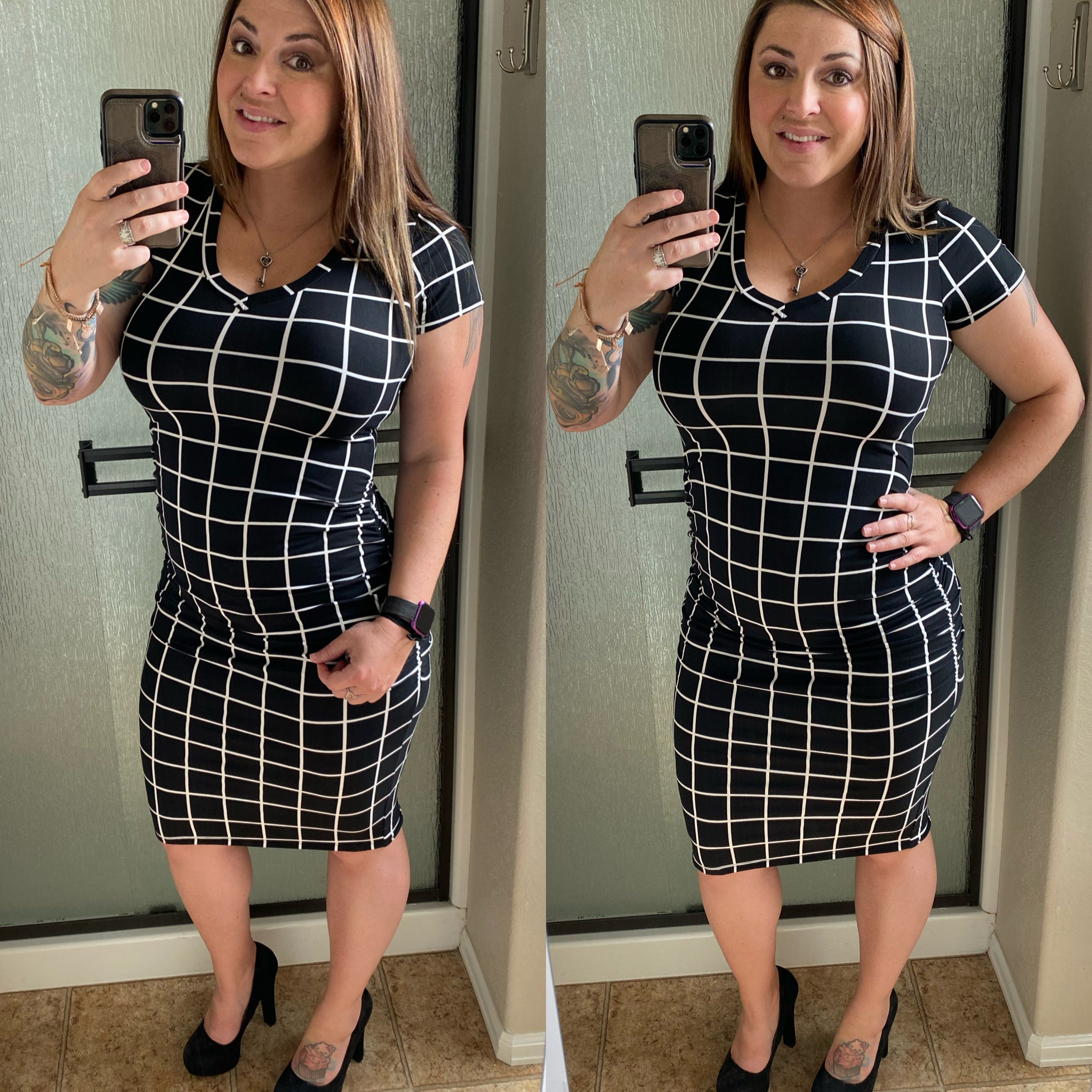 The Jolene Dress - Plaid Side Ruched Bodycon Midi Dress