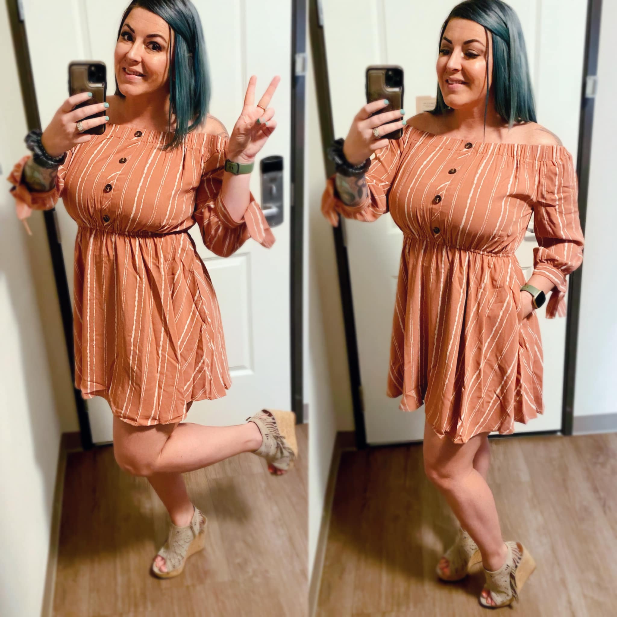 Happy Hour Off Shoulder Striped Dress