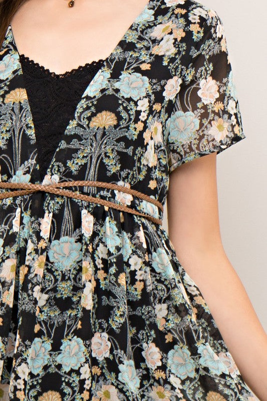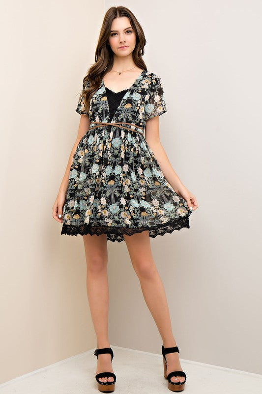 Floral Lace Trim Babydoll Dress