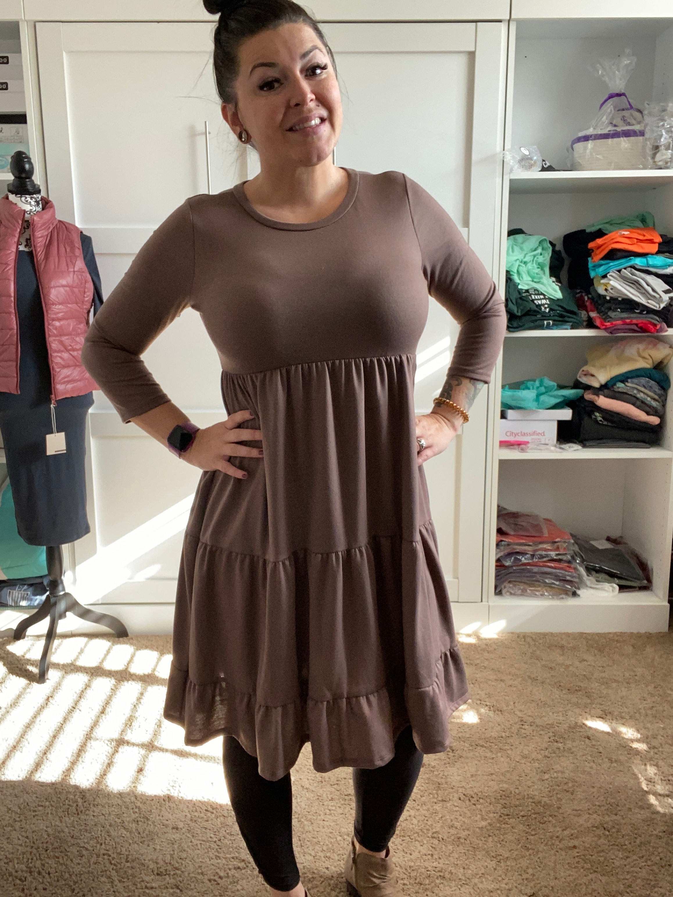Tiered 3/4 Sleeve Dress