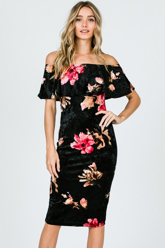 Floral Off Shoulder Body Con Dress