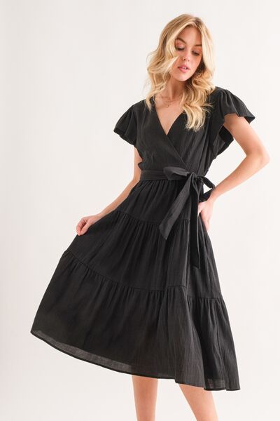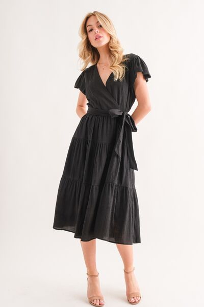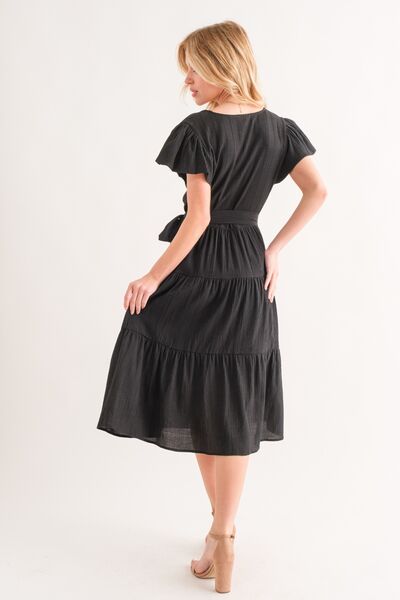 The Textured Tiered Midi Dress is a charming and elegant piece that adds a touch of sophistication to any outfit. Its unique textured fabric and tiered design create a flattering silhouette that is both stylish and comfortable. This dress is versatile and can be dressed up with heels for a special occasion or dressed down with sandals for a casual outing. The midi length is flattering on all body types and provides a modest yet fashionable look. Whether you're attending a wedding, going out for brunch, or enjoying a night out, this dress is sure to make a statement. Elevate your wardrobe with the Textured Tiered Midi Dress for a chic and refined style.