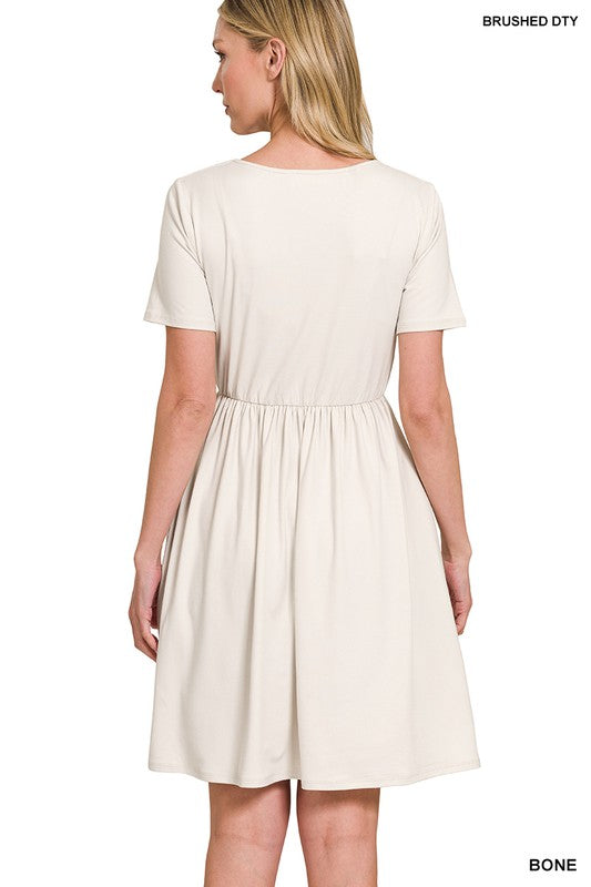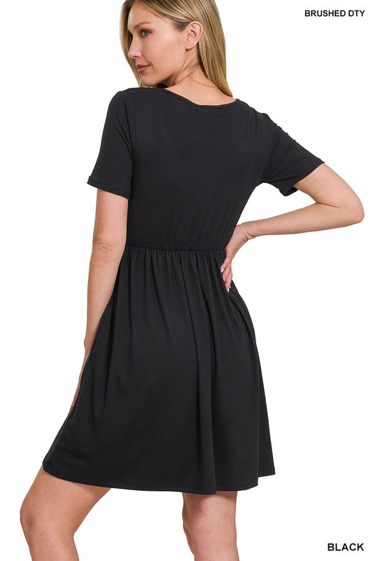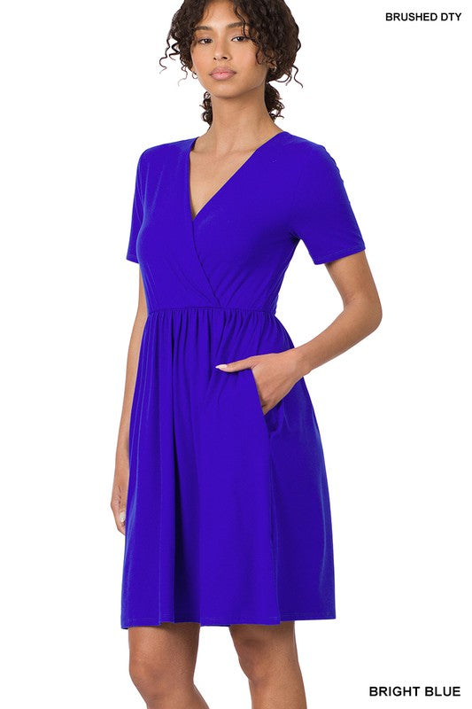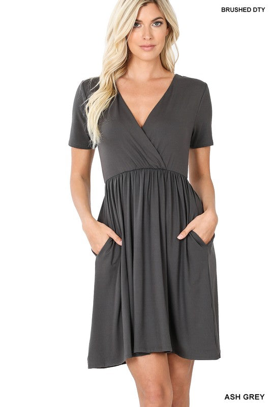 A must-have piece that combines comfort and style effortlessly. Crafted from the finest quality Brushed DTY fabric, this dress offers a luxurious and buttery soft feel against your skin. The surplice design adds a touch of elegance to the dress, making it suitable for various occasions.